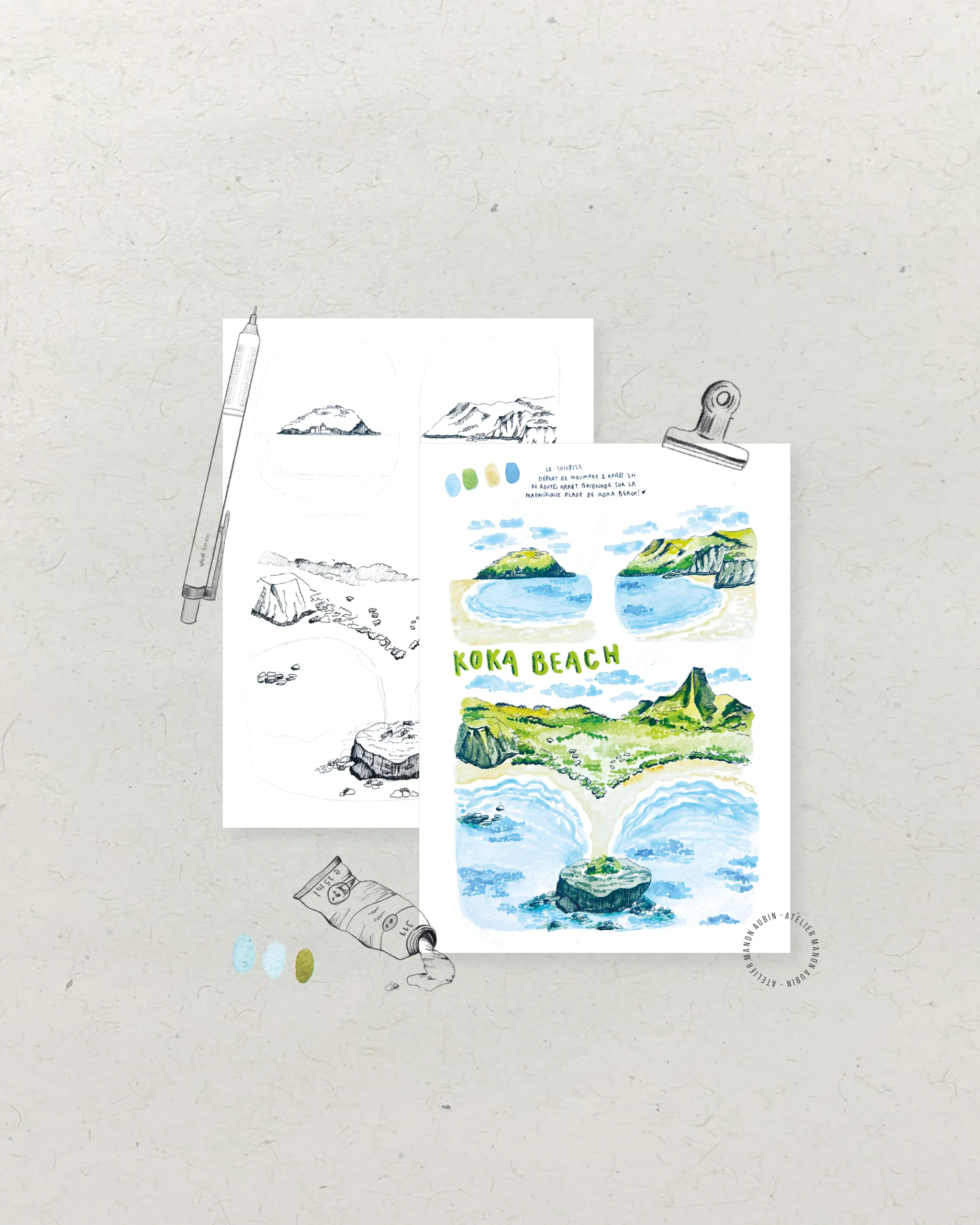 J’ai réalisé un atelier aquarelle avec Manon et j’ai adoré ! Le format est vraiment très chouette, 2h pour dessiner sans pression, avec le matériel qu’il faut et surtout de bons conseils !