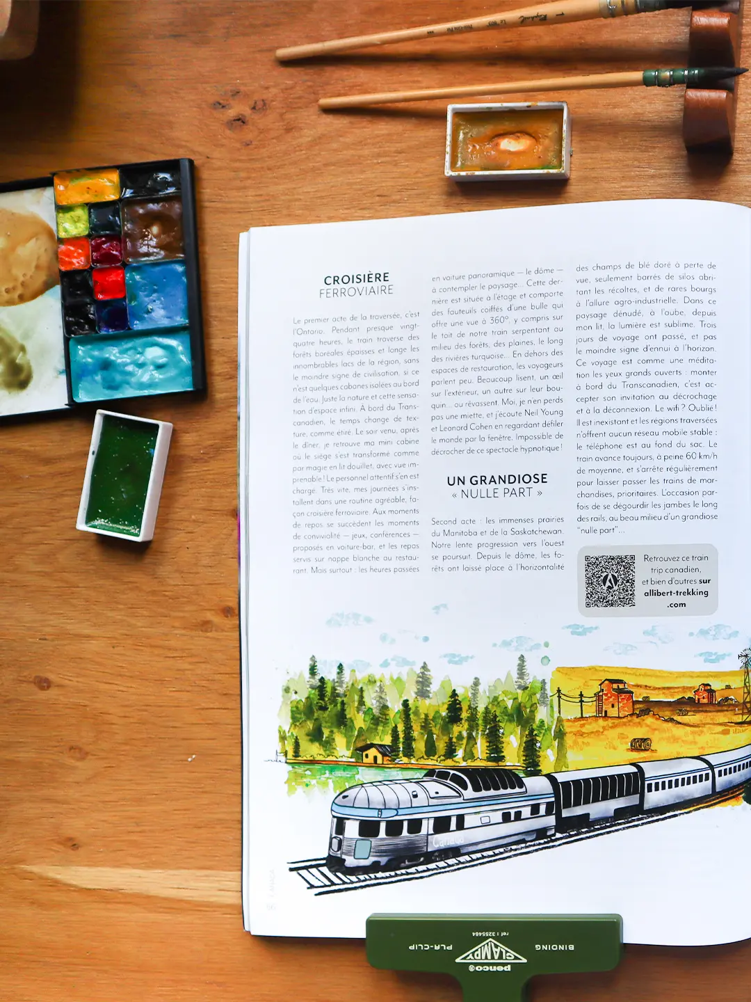 Manon est une illustratrice talentueuse, fiable, et attentive au besoin de ses clients. Ces aquarelles maitrisées et délicates, livrées en temps et en heure, avaient été commandées pour illustrer un récit de voyage en Transcanadien. Elles ont parfaitement su trouver leur place dans Yatra, la revue d’inspiration voyage éditée chaque année par l’agence Allibert Trekking.