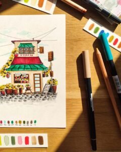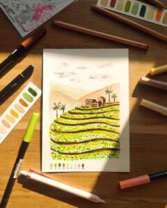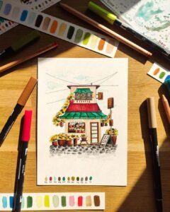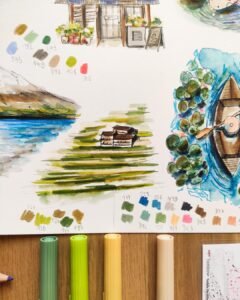 « Lors du tournage de vidéos réalisé en collaboration entre Tombow et Rougier & Plé, Manon a réalisé de superbes illustrations variées et inspirantes.