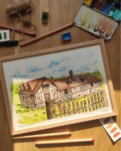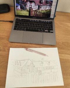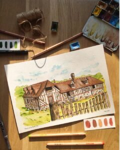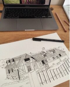 Création d’un illustration sur mesure pour représenter la maison de famille des grands parents d’Amandine.