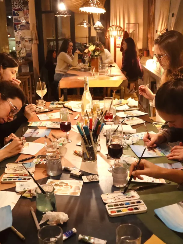 Matériel complet fourni : pinceaux, peintures, papier aquarelle. Vous repartez avec votre création !
